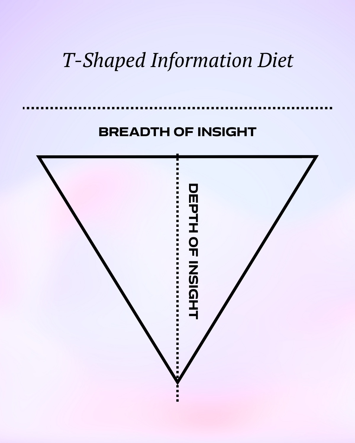 The strongest teams build T-shaped information diets, intentionally broad across topics, with each member going deep in a different domain. To reach differentiated insights, your knowledge graph must touch territories your competitors don’t, going both broader and deeper than they do. This requires delegation and intent, where each person owns a unique vertical of expertise but the horizontal is built collectively.