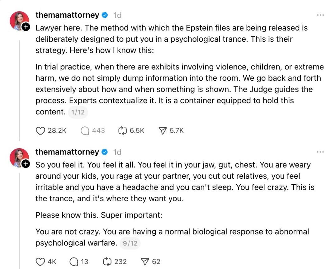 As awful as it is, many mothers are forcing themselves to see what is actually in these files, because they know they need to have a correct model of the world if they’re going to protect their children. To their own horror, mothers are leaning in.
